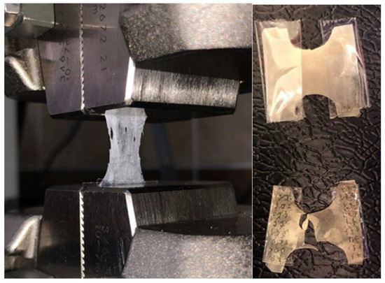 Flexibility directly affects the structural integrity and stability of the films. In order to determine this, a force was applied to extend each OTF formulation by 1 mm per minute. Sample images from the measurements are given in Figure 4, and the data on the elongation percentages of the formulations are given in Table 5.