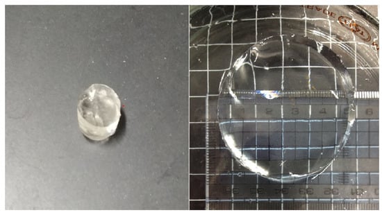 DADMAC-Aac-APTAC hydrogel before and after swelling.