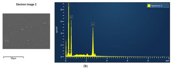 SEM-EDS images of DADMAC-AAc-APTAC hydrogel prepared by 2 kGy radiation dose and 1:0.5:1 composition are illustrated in Figure 8. Figure 8a shows SEM of gel with a smooth surface morphology bearing an entangled network of hydrogel polymer. Figure 8b represents the significant constituent elements of the hydrogel are Carbon (C), Nitrogen (N), Oxygen (O), and Chlorine (Cl) of quaternary ammonium salt, and the compositional percentage is listed in Table 1. Therefore, it can be concluded that the monomers have undergone polymerization perfectly without disrupting their structure.