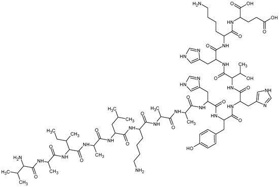 Currently, the increasing need of innovative pharmacological therapies against infectious diseases is unquestionable. Despite the improvement of antimicrobial agents, the phenomenon of antimicrobial resistance—the resistance developed by pathogenic microorganisms against previously effective treatments—represents an ever-present clinical and financial burden for the global healthcare system [1,2]. Among several novel approaches devoted to overcoming the global antimicrobial resistance crisis, the use of antimicrobial peptides represents a promising strategy for the design of new drugs [3,4,5,6]. Antimicrobial peptides are phylogenetically ancient biomolecules with a broad spectrum of activity. They are effective against a wide variety of pathogens and are present in all living organisms (invertebrates, vertebrates, plants, and prokaryotes) [6]. Moreover, several studies have shown that divalent metal ions, such as Zn2+, can modulate the efficacy of antimicrobial peptides [7,8,9,10], for example, by modifying their physicochemical properties (e.g., charge or structure) [11,12].