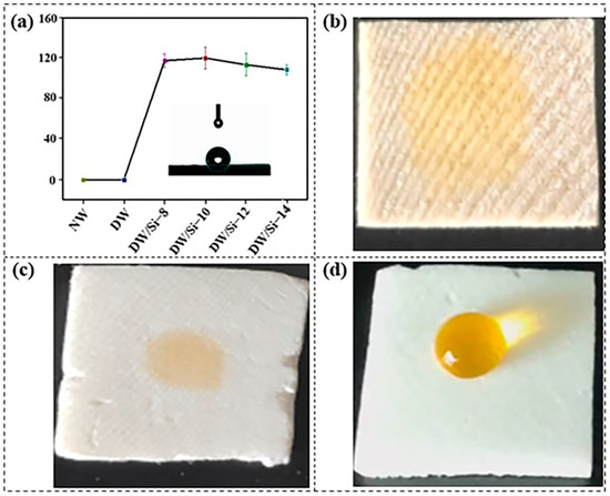 - Yang, J.S.; Li, H.; Yi, Z.D.; Liao, M.R.; Qin, Z.Y. Stable superhydrophobic wood surface constracting by KH580 and nano-Al2O3 on polydopamine coating with two process methods. Colloids Surf. A 2022, 637, 128219–128228. [Google Scholar] [CrossRef]