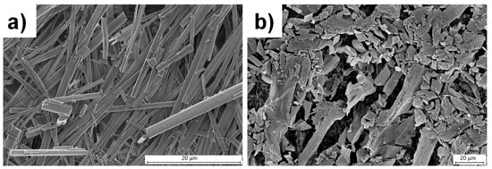 SEM is an important technique to visualize the morphology of gel fibers [12,67] and can be used to distinguish the self-assembly modes in supramolecular gels by analyzing the morphology of the gel fibers [68,69]. The morphologies of the fibrous network of L1 and L3 xerogels were analyzed by performing SEM on the dried gels in water at the minimum gelator concentration (1.8 wt%). L1 displayed rod-like morphology with thickness ranging from 0.3–3.0 μm, but twisted rod-like morphologies were observed from L3 xerogels, and the thickness of the fibers was within the range of 1.0–3.0 μm (Figure S3). SEM performed at 2.0 wt% (above MGC) on L1 xerogels showed rod-like morphologies with thickness ranging from 0.5–4.0 μm (Figure 2a), but flake-like morphologies were observed for L3, with dimensions ranging from 4.0–16.0 μm (Figure 2b). The comparison of the SEM images of L3 and isomeric diNO xerogels [55] from water at 4.0 wt% revealed that the morphologies of the gels did not depend on the relative position of the pyridyl N-oxide moiety (Figure S4).