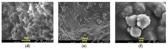 Figure 2c,d show that the frozen colloid structures were relatively loose, with an obvious “honeycomb briquette-like” structure. The monomers were only polymerized and showed circular rings with short molecular chains. The product characteristics included low strength and high brittleness and were prone to breakage.