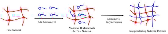 By comparing the microstructural morphologies and strengths of the IPNs, the following conclusions could be drawn: (1) IPNs with a good degree of fusion and no phase separation could form multidimensional network structures with high strength. (2) Interpenetrating particles could increase the strength of IPNs by embedding themselves into the polymer skeleton, thus increasing the phase stripping resistance and blending with the polymer network structure. (3) The aggregation of particles could reduce the strength of IPNs.