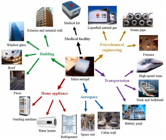 - Noroozi, M.; Panahi-Sarmad, M.; Abrisham, M.; Amirkiai, A.; Asghari, N.; Golbaten-Mofrad, H.; Karimpour-Motlagh, N.; Goodarzi, V.; Bahramian, A.R.; Zahiri, B. Nanostructure of Aerogels and Their Applications in Thermal Energy Insulation. ACS Appl. Energy Mater. 2019, 2, 5319–5349. [Google Scholar] [CrossRef]