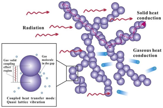 - Swimm, K.; Vidi, S.; Reichenauer, G.; Ebert, H.P. Coupling of gaseous and solid thermal conduction in porous solids. J. Non-Cryst. Solids 2017, 456, 114–124. [Google Scholar] [CrossRef]