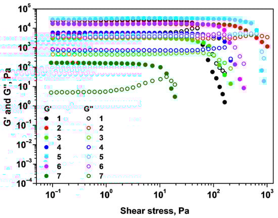 | System | G′ (Pa) | Yield Stress (Pa) |