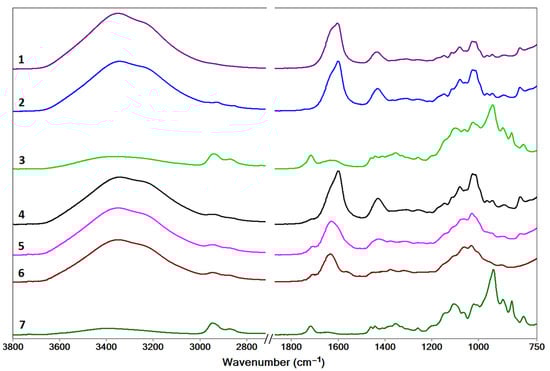 - Leal, D.; Matsuhiro, B.; Rossi, M.; Caruso, F. FT-IR spectra of alginic acid block fractions in three species of brown seaweeds. Carbohydr. Res. 2008, 343, 308–316. [Google Scholar] [CrossRef]