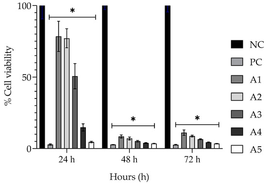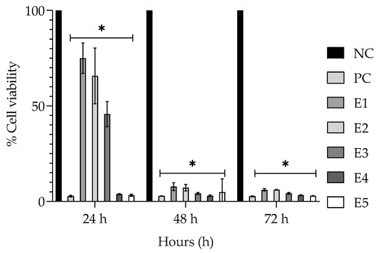 2.3. Determination of Toxicity of the Encapsulated EPPR by the 3-(4,5-dimethylthiazol-2-yl)-2,5-diphenyltetrazolium Bromide (MTT) Assay
