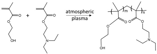 Synthetic route for the plasma polymerization of (p(HEMA-co-DEAEMA) films.