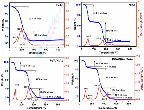 - De Jesus, J.C.; González, I.; Quevedo, A.; Puerta, T. Thermal decomposition of nickel acetate tetrahydrate: An integrated study by TGA, QMS and XPS techniques. J. Mol. Catal. A Chem. 2005, 228, 283–291. [Google Scholar] [CrossRef]