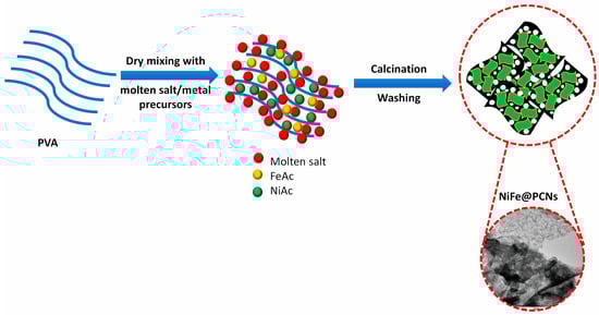 Thamer, B.M.; Abdul Hameed, M.M.; El-Newehy, M.H. Molten Salts Approach of Poly(vinyl alcohol)-Derived Bimetallic Nickel–Iron Sheets Supported on Porous Carbon Nanosheet as an Effective and Durable Electrocatalyst for Methanol Oxidation. Gels 2023, 9, 238. https://doi.org/10.3390/gels9030238