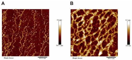 Microscopic morphology analysis of SCIBIOIII.AFM morphology of SCIBIOIII at 24 h. (A) AFM morphology of SCIBIOIII at 600 nm. (B) AFM morphology of SCIBIOIII at 200 nm.
