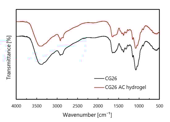 FT−IR spectra of CG26 before autoclaving and CG26 AC hydrogel.
