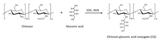 Schematic illustration of the synthesis of chitosan-gluconic acid conjugate.