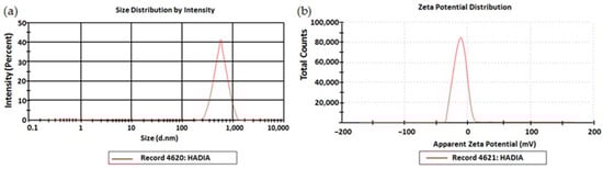 NPs were characterized using photon correlation spectroscopy (Malvern Zetasizer Nano series Nano-S and Nano-Z, Malvern Instruments Ltd., Worcestershire, UK). SNPs were dispersed in deionized water for 5 mL and analyzed on Zetasizer. Zeta potential was measured using special tubes. All experiments were run in triplicate; mean ± SD, n = 3 [41].