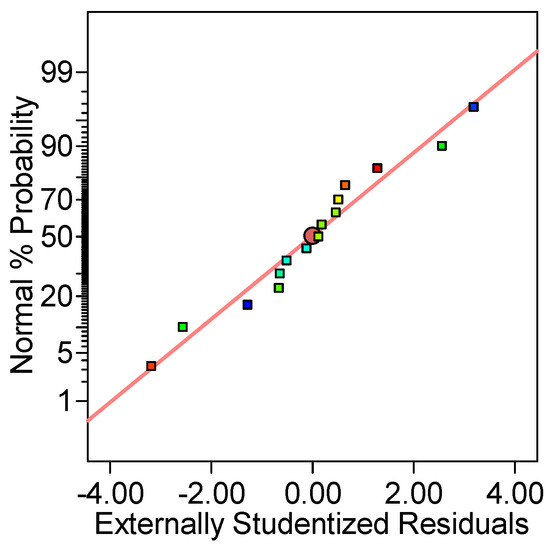 The Normal probability plot of residuals obtained for RB desorption efficiency.