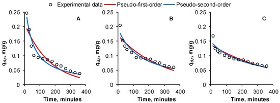 Several nonlinear kinetic and equilibrium isotherm models (Table 5 and Table 6) were applied to the obtained desorption data. OriginPro 2019b software (OriginLab, Northampton, MA, USA) and CAVS software, version 2.0 (Federal University of Paraná, Curitiba, Paraná, Brazil) were used for records treatment.
