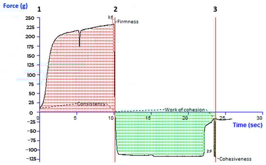 The software-assisted gel texture analyzer (TA.XT Plus Texture Analyzer, Stable Micro Systems Ltd., Surrey, UK) was used to examine the texture profile of developed gel. To prevent any bubble entrapment, a total of 50 mL of the produced gel was transferred to a 100 mL volume beaker and was spread uniformly. Twice, the analytical probe was placed into the beaker containing gel at a deepness of 15 mm, moving at slow speed of 2 mm per second, and allowing 20 s between each compression. The outcome was represented as a force curve that included mechanical characteristics such as cohesiveness, consistency, cohesiveness index, and hardness. The experiments were conducted in triplets [].