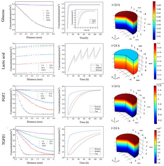 2.5. Spatial–Temporal Distribution of Solutes in 3D Hydrogel during Culture
