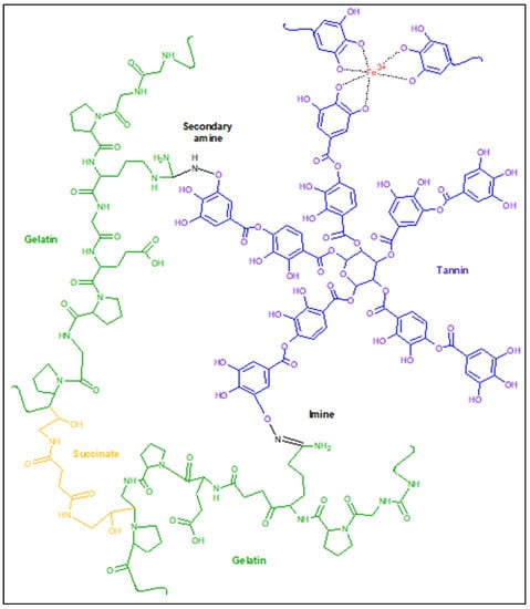 The proposed scheme for the formation of gelatin–tannin hydrogels based on Gelatinol®.