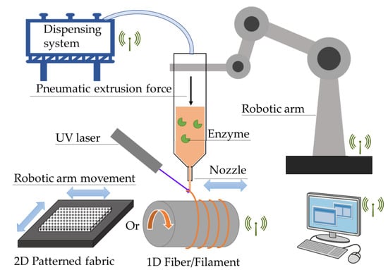 - Shao, Y.; Liao, Z.; Gao, B.; He, B. Emerging 3D Printing Strategies for Enzyme Immobilization: Materials, Methods, and Applications. ACS Omega 2022, 7, 11530–11543. [Google Scholar] [CrossRef] [PubMed]