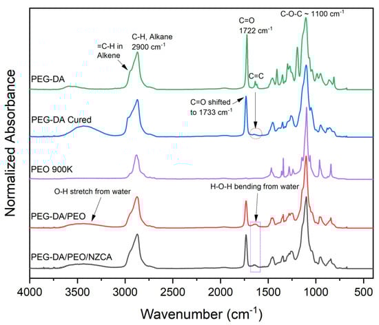 - Pramono, E.; Utomo, S.B.; Wulandari, V.; Clegg, F. FTIR Studies on the Effect of Concentration of Polyethylene Glycol on Polimerization of Shellac. J. Phys. Conf. Ser. 2016, 776, 012053. [Google Scholar] [CrossRef]