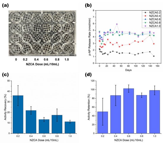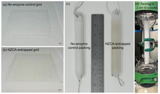- Schmieg, B.; Schimek, A.; Franzreb, M. Development and Performance of a 3D-Printable Poly(Ethylene Glycol) Diacrylate Hydrogel Suitable for Enzyme Entrapment and Long-Term Biocatalytic Applications. Eng. Life Sci. 2018, 18, 659–667. [Google Scholar] [CrossRef]