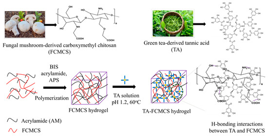 Schematic representation of formation of TA-FCMCS hydrogel.