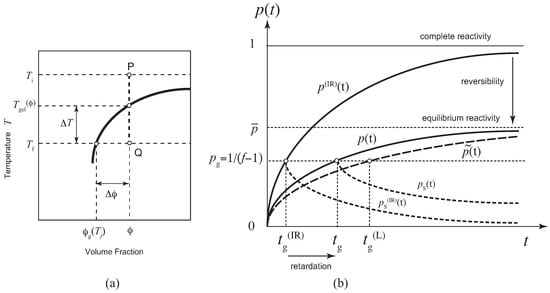 From the theoretical side, there have been accumulating studies based on the kinetic equations for the cross-linking reaction of functional groups in the classical Flory–Stockmayer pictures of gelation. For instance, Stockmayer [,] derived the rate equation of irreversible gelation for the reactivity (conversion) as a function of time, and found its value at the gel point.