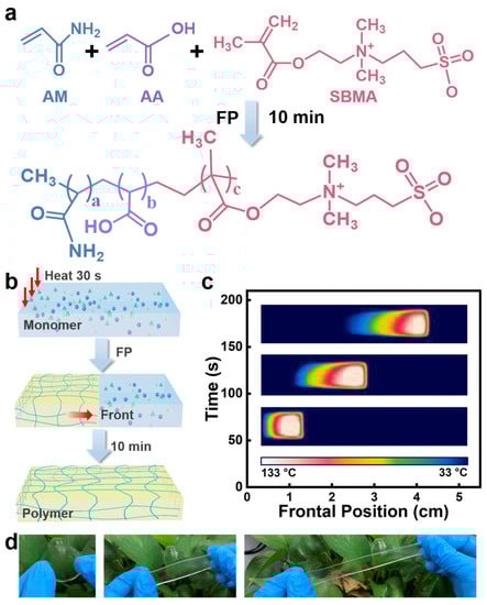- Yang, Y.; Hu, J.; Liu, J.D.; Qin, Y.; Mao, J.; Liang, Y.; Wang, G.; Shen, H.; Wang, C.F.; Chen, S. Rapid synthesis of biocompatible bilayer hydrogels via frontal polymerization. J. Polym. Sci. 2022, 60, 2784–2793. [Google Scholar] [CrossRef]