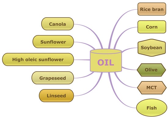 Different oils or liquid hydrocarbons can be used as the base material for oleogels, depending on the desired properties and their further application. Some common oils used for oleogel formulations are presented in Figure 2.