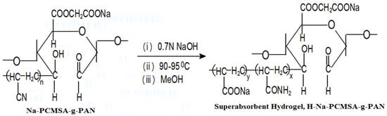 Trivedi, J.; Chourasia, A. Sodium Salt of Partially Carboxymethylated Sodium Alginate-Graft-Poly(Acrylonitrile): II Superabsorbency, Salt Sensitivity and Swelling Kinetics of Hydrogel, H-Na-PCMSA-g-PAN. Gels 2023, 9, 407. https://doi.org/10.3390/gels9050407