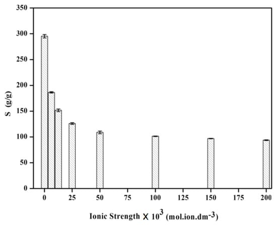 | (g water/g gel) | (h) | (g water/g gel) | (%) | [(g water/g gel) min] | (mole-ion dm−3) | [(g.gel/g.water)/min] | ||