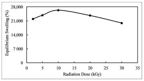 Effect of gamma radiation dose on equilibrium swelling of hydrogel.