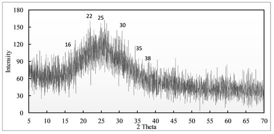 The crystalline/amorphous nature of the gel was analyzed by X-ray diffraction run with a scene rate of 2 °C/minute with 2Θ ranges of 5 °C to 70 °C. Figure 5 displays the diffraction peaks for the gel prepared at 10 kGy radiation dose where DMAA–AMPSA does not show any sharp peaks but a broad noisy peak at 25 °C for the polymer. The other peaks from 16° to 38 °C (2Θ) may indicate the semi-crystallinity in the structure of the gel [,].