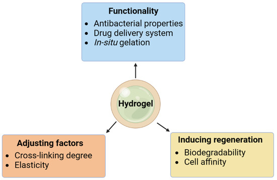 Although crosslinking is not a fundamental property of hydrogels, it does have a significant impact on the other properties of the material. Because of this, the hydrogel is not only resistant to heat and erosion but also to mechanical stress. It has the potential to affect rheological parameters, skin hydration, and skin diffusion [48]. Although the nature of crosslinking can vary greatly, the degree of crosslinking is always related to every other property of a hydrogel. Physical crosslinking (by complicated coacervation or ionic contact), chemical crosslinking (by a crosslinker), and radiation crosslinking can all be used to generate the hydrogel network. The degree of crosslinking determines the material’s properties, allowing us to optimize it for a wide range of uses while still using a single polymer [49,50]. Nonetheless, there are a few drawbacks, such as their inflexibility in processing properties [51], because they are insoluble and infusible.