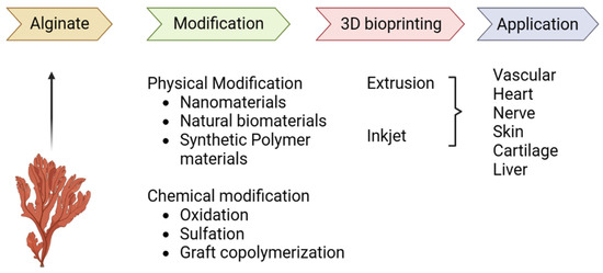 Regenerative and reparative tissue engineering relies heavily on the use of 3D scaffolds because, in comparison to a 2D culture, it better promotes cell adhesion and proliferation. Simulating the in vivo milieu and laying the groundwork for transplantation experiments are both made easier with the help of 3D-printed constructs that look and function like human tissues [203]. Tissue engineering applications for sodium-alginate-based hydrogels are being significantly enhanced using 3D printing technology. Different types of soft tissue, including the arteries, veins, heart muscle, epidermis, liver, and cartilage, have profited from the utilization of sodium alginate hydrogels for regeneration.