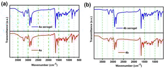 ATR-IR spectrum of the gelators (a) 4a and (b) 4b in the amorphous and xerogel states, respectively.