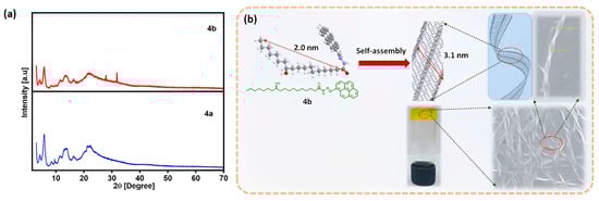 (a) XRD pattern of the xerogel formed from 4a and 4b; (b) Mechanism of molecular self-assembly of 4b.