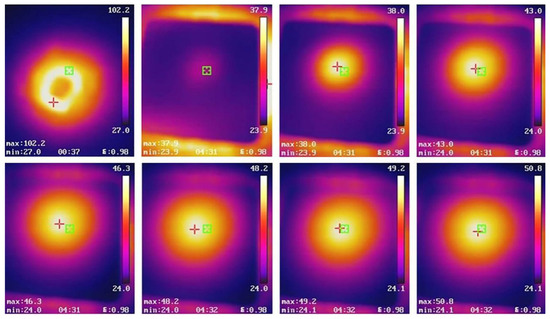 Infrared images of the DW/PI-60 aerogel at a point heat source of 102 °C.