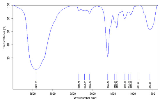 The nanoparticle coupling polymer gel belongs to soft-solid-like systems with a permanent system of bonds, which has high strength. According to FT-IR analysis, as shown in Figure 4. There is an obvious vibration absorption peak at 1203 cm−1, which belongs to the C-H vibration absorption peak in the benzene ring, which indicates that the aromatic ring crosslinker has been successfully introduced into the gel structure [9]. At the same time, under normal circumstances, the vibrational absorption peak of C=O in the amide group is at 1600 cm−1. Still, the vibrational absorption peak of C=O in the amide group in this graph moves to 1629 cm−1, with a significant shift, indicating that the amide group in AM/AMPS undergoes a crosslinking reaction with the crosslinking agent [10].