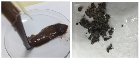 Figure 6. Morphology of nanoparticle coupling polymer gel (left) and nanoparticle coupling expansion granules (right).
