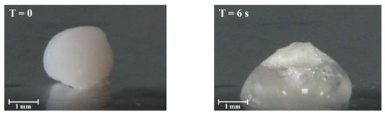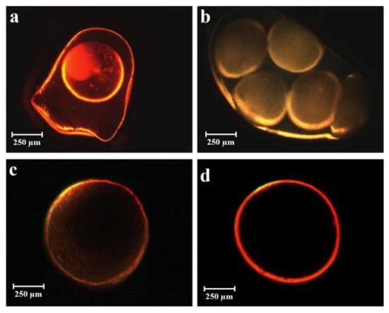 - Posbeyikian, A.; Tubert, E.; Bacigalupe, A.; Escobar, M.M.; Santagapita, P.R.; Amodeo, G.; Perullini, M. Evaluation of calcium alginate bead formation kinetics: An integrated analysis through light microscopy, rheology and microstructural SAXS. Carbohydr. Polym. 2021, 269, 118293. [Google Scholar] [CrossRef]