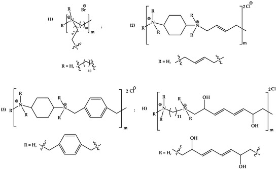 Polyalkylamines obtained by polymerization of vinylbenzyl-N,N,N-trialkylammonium chlorides (adapted and redrawn from [95]).