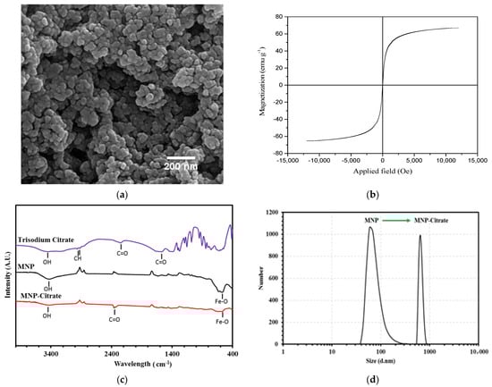 2.1. Properties of Magnetic NPs Synthesized by Co-Precipitation Method