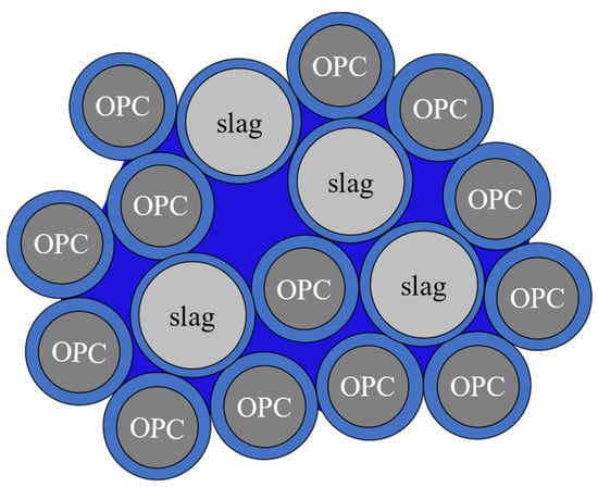 Plots for OPC/slag paste were shown in the upper area on the τ–β diagram compared to those for OPC paste. This result indicates the existence of more free water there since the decrease in the relaxation curves gradually occurs with admixture particles for a longer time. Water held among admixture particles is gradually supplied to hydrate OPC particles, as shown in Figure 5.