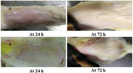 (A) Irritation study on nude rat skin conducted by applying the developed nanoemulsion. (B) Irritation study on nude rat skin conducted by applying the developed nanoemulgel.