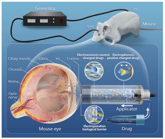 - Wei, D.; Pu, N.; Li, S.-Y.; Wang, Y.-G.; Tao, Y. Application of iontophoresis in ophthalmic practice: An innovative strategy to deliver drugs into the eye. Drug Deliv. 2023, 30, 2165736. [Google Scholar] [CrossRef]