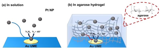 | Concentration of Agarose Hydrogel (wt%) | Steady-State Current (nA) | Calculated Diffusion Coefficient of Hydrazine a (×10−6 cm2/s) |